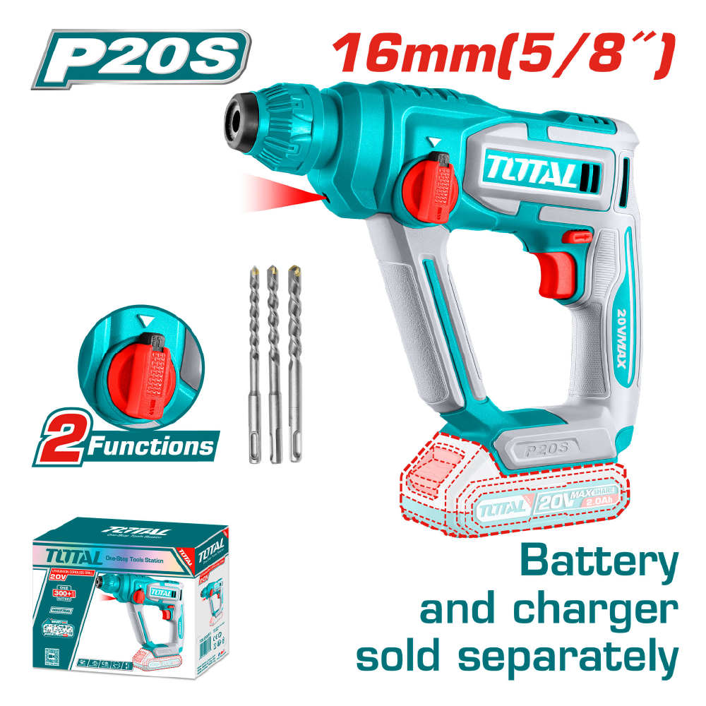 Máy khoan bê tông dùng pin Lithium-Ion 20V (không kèm pin & sạc) – Total – TRHLI20168