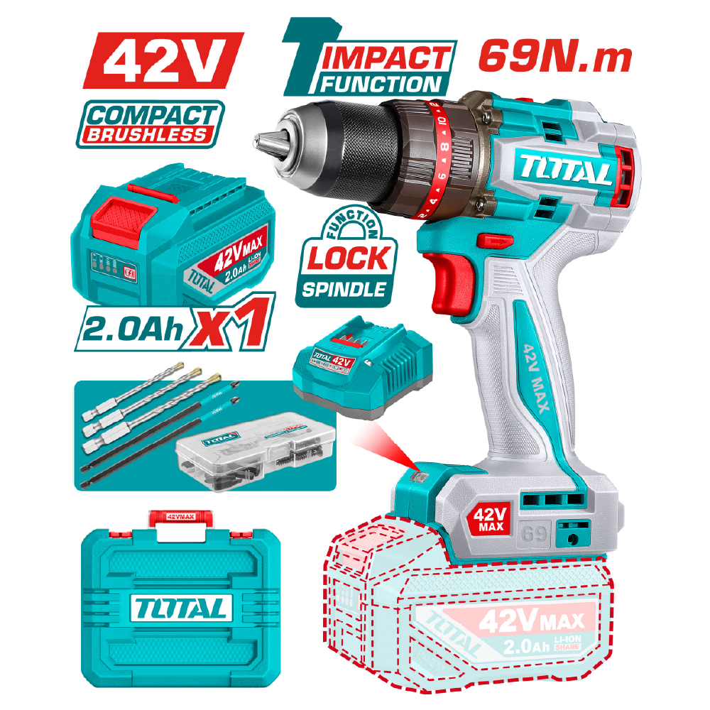 Máy khoan búa không chổi than dùng pin 42V – Total – TIDLI426981